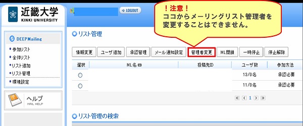 (2) 新管理者 のお手元に「「@ml.kindai.ac.jp」のグループ管理者用ログインID通知書」が届き