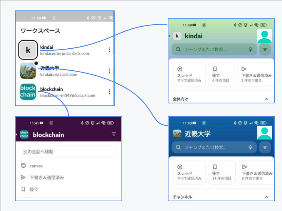 1. Slackアプリを開き、全学用ワークスペースを表示する