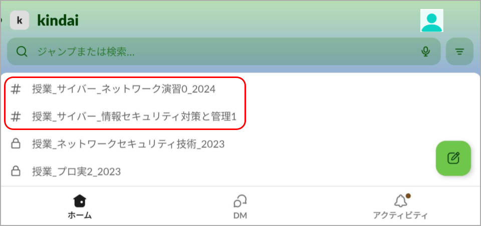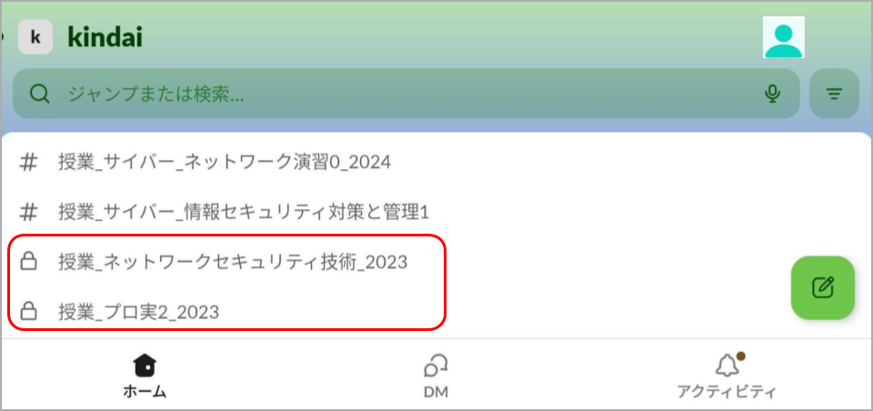 - 授業でプライベートチャンネルを使う場合は、担当教員などからチャンネルに招待される必要があります。