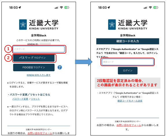 2段階認証を設定している場合、確認コード(数字6桁)を入力する画面が表示される場合があります。